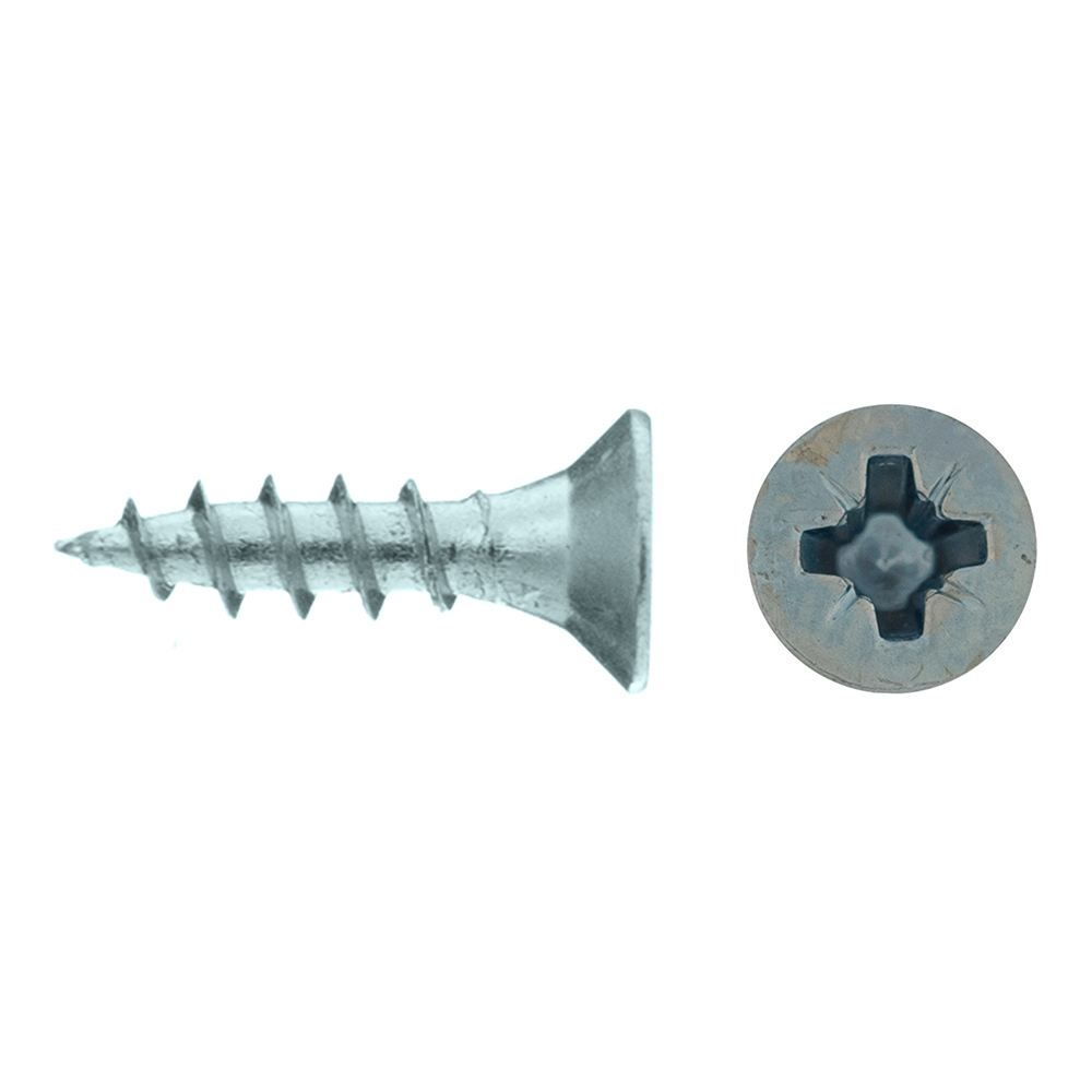 Саморезы имеют потайную головку с крестообразным шлицем PZ 1 и острый наконечник. Производятся из оцинкованной стали.