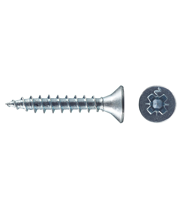 Саморезы имеют потайную головку с крестообразным шлицем PZ 2 и острый наконечник. Производятся из оцинкованной стали.