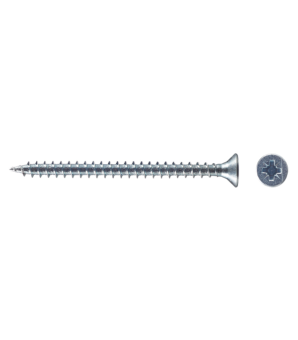 Саморезы имеют потайную головку с крестообразным шлицем PZ 1 и острый наконечник. Производятся из оцинкованной стали.