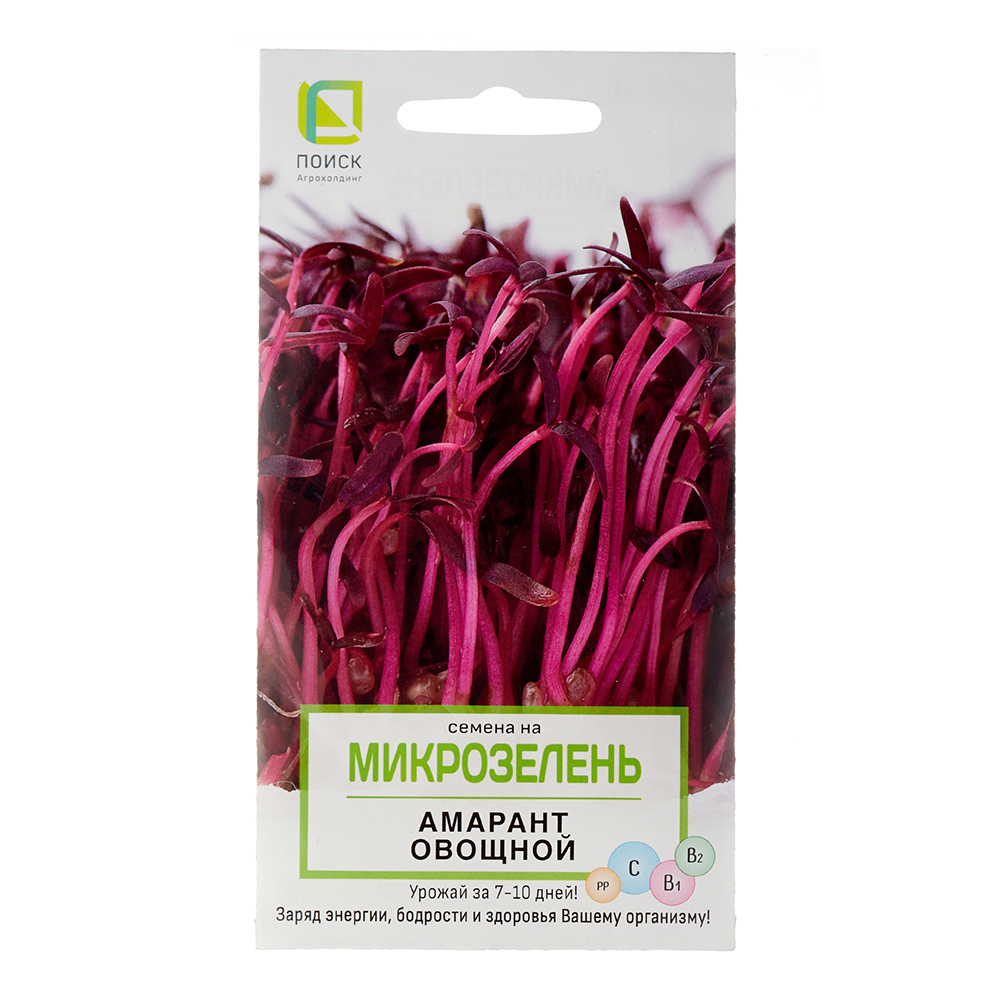 Для оздоровления и омоложения организма, источник растительного белка. Микрозелень амаранта является очень полезным продуктом, обладая горьковато-ореховым вкусом, послужит отличным дополнением любого блюда, придаст нежный вкус мясу, рыбе, закускам, овощам, смузи и витаминизированным коктейлям. В проростках содержатся белки, аминокислоты, витамины В, Е, С, D, полиненасыщенные жирные кислоты, минеральные компоненты. Ежедневное употребление ростков амаранта даже в небольших количествах способствует оздоровлению и омоложению организма. В состав входят семена амаранта овощного Крепыш.