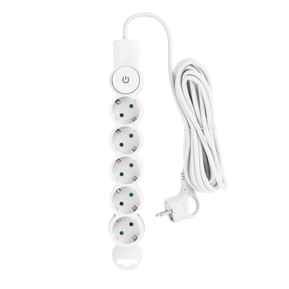 Сетевой фильтр белого цвета, имеет 5 розеток с заземлением. Большая и удобная кнопка на корпусе позволяет включать и выключать сетевой фильтр не вынимая вилку из розетки. Встроенная индикаторная лампа сигнализирует о состоянии прибора. Провод оснащен литой вилкой удобной г-образной формы с заземляющим контактом. Длина провода 5 метров. В отличие от обычного удлинителя, сетевой фильтр сглаживает импульсные помехи и скачки напряжения, обеспечивая безопасную работу бытового и офисного электронного оборудования.