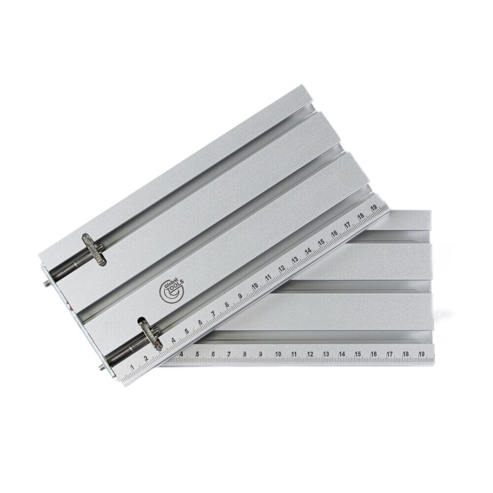 Комплект для фрезерного шаблона KT RJ200 200 мм – универсальное приспособление для фрезерования одинаковых или узких заготовок, углублений, сквозных проёмов, изготовлении тетивы лестницы и иных подобных задач.