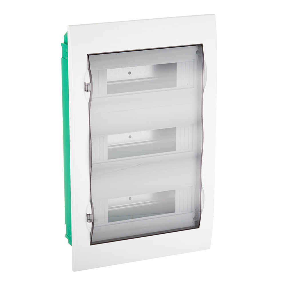 Предназначен для установки аппаратов защиты и управления бытовой электроустановки. Щиток встраивается в стену, имеет 3 DIN-рейки для установки 36 аппаратов по 18 мм.