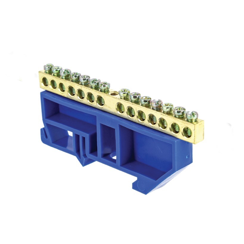 Шина нулевая на DIN-изоляторе EKF PROxima 6х9 мм 14 отверстий латунь синяя (20 шт.) (sn0-63-14-d)