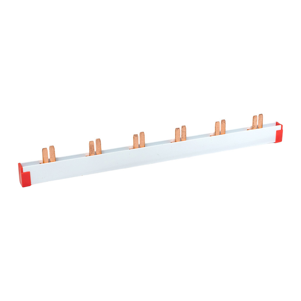 Предназначена для подключения модульных аппаратов. Представляет собой пластины, выполненные из меди (шины на 100 А – из луженой меди), закрепленные в корпусе из диэлектрического материала, не поддерживающего горение, и выпускаются стандартной длиной на 12 модулей. Шины соединительные делятся на два типа — FORK («вилка») и PIN («гребенка») на номинальные токи 63 и 100 А. Могут быть выполнены в одно- двух- трех- и четырехполюсном исполнений.