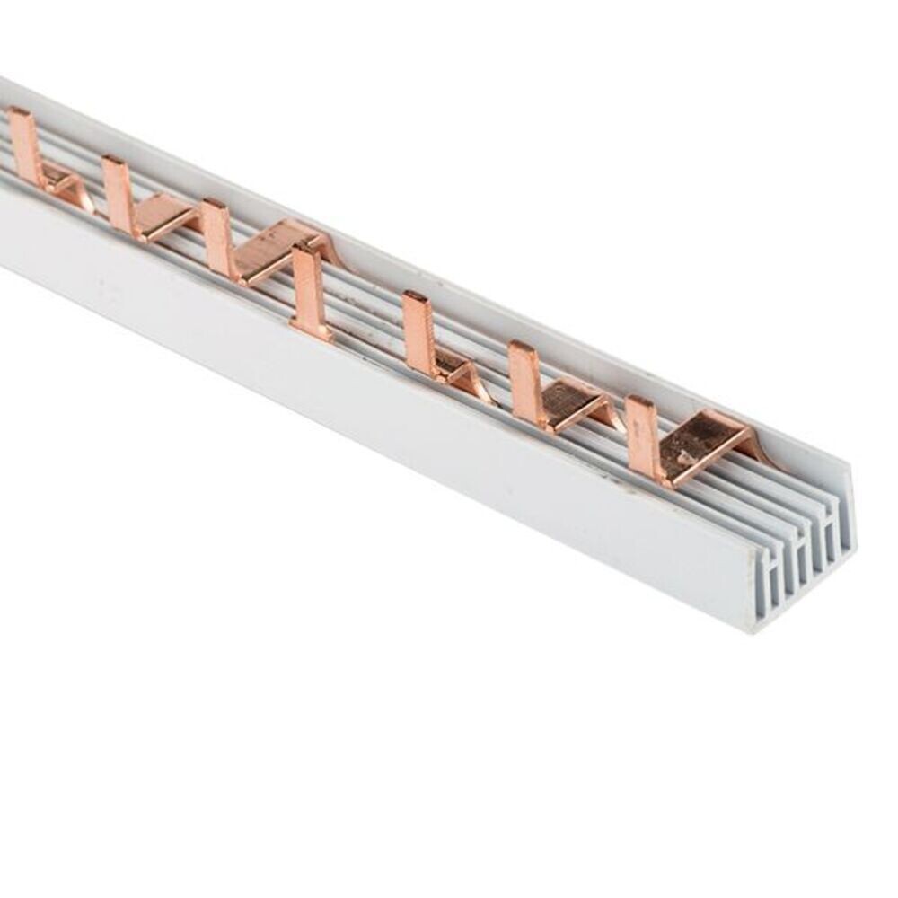 Шина соединительная представляет собой пластину, выполненную из меди, закрепленную в корпусе из диэлектрического материала, не поддерживающего горение, и выпускается стандартной длиной 1 метр.