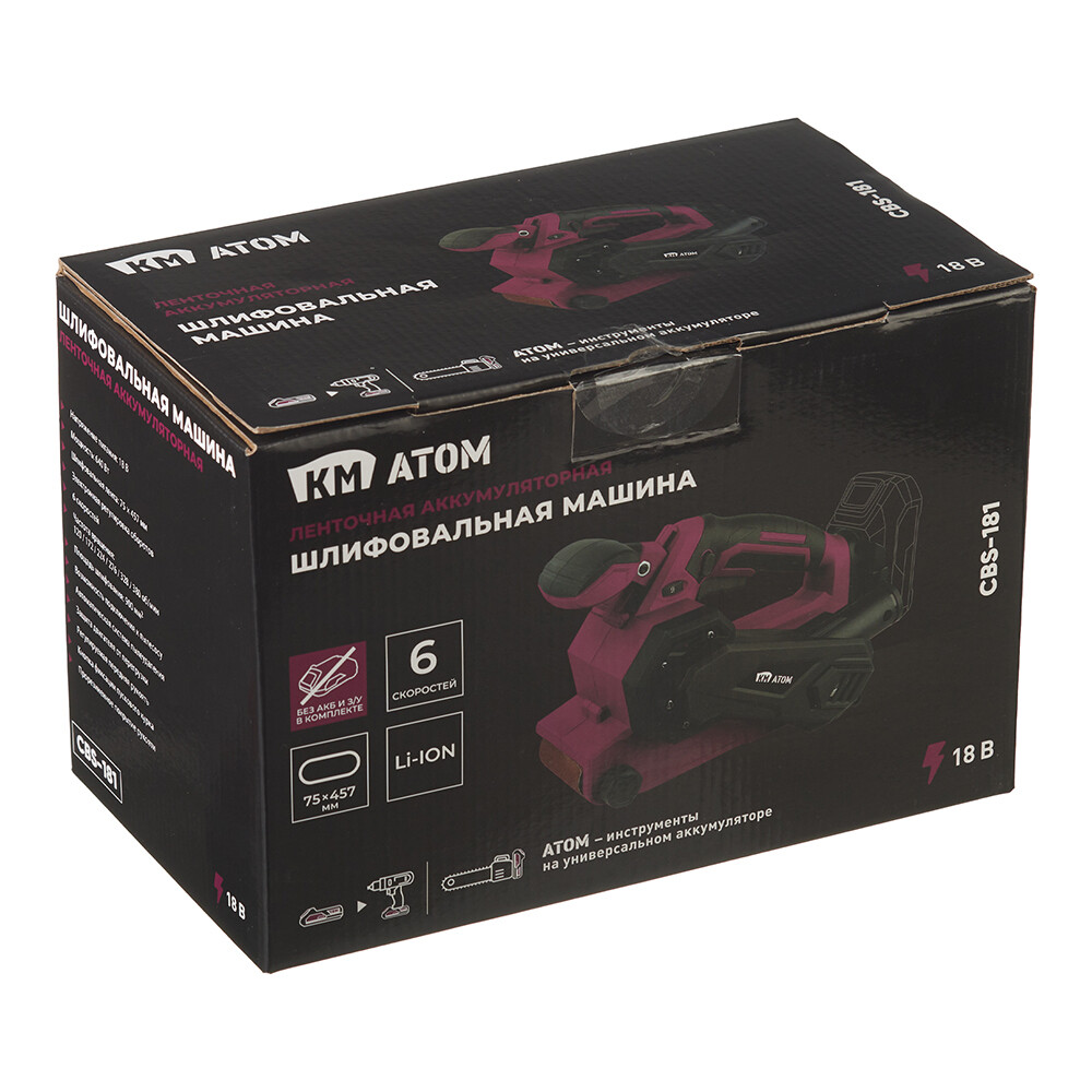 Шлифмашина ленточная аккумуляторная КМ АТОМ 18В 457х75 мм без АКБ и ЗУ (CBS-181)