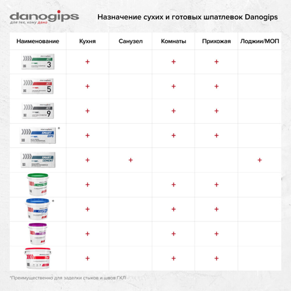 Сухая полимерная шпатлевка подходит как для выравнивания поверхности, так и для нанесения финишного слоя, а также для подготовки основания под различные виды отделки, в том числе оклейку обоями и окраску.