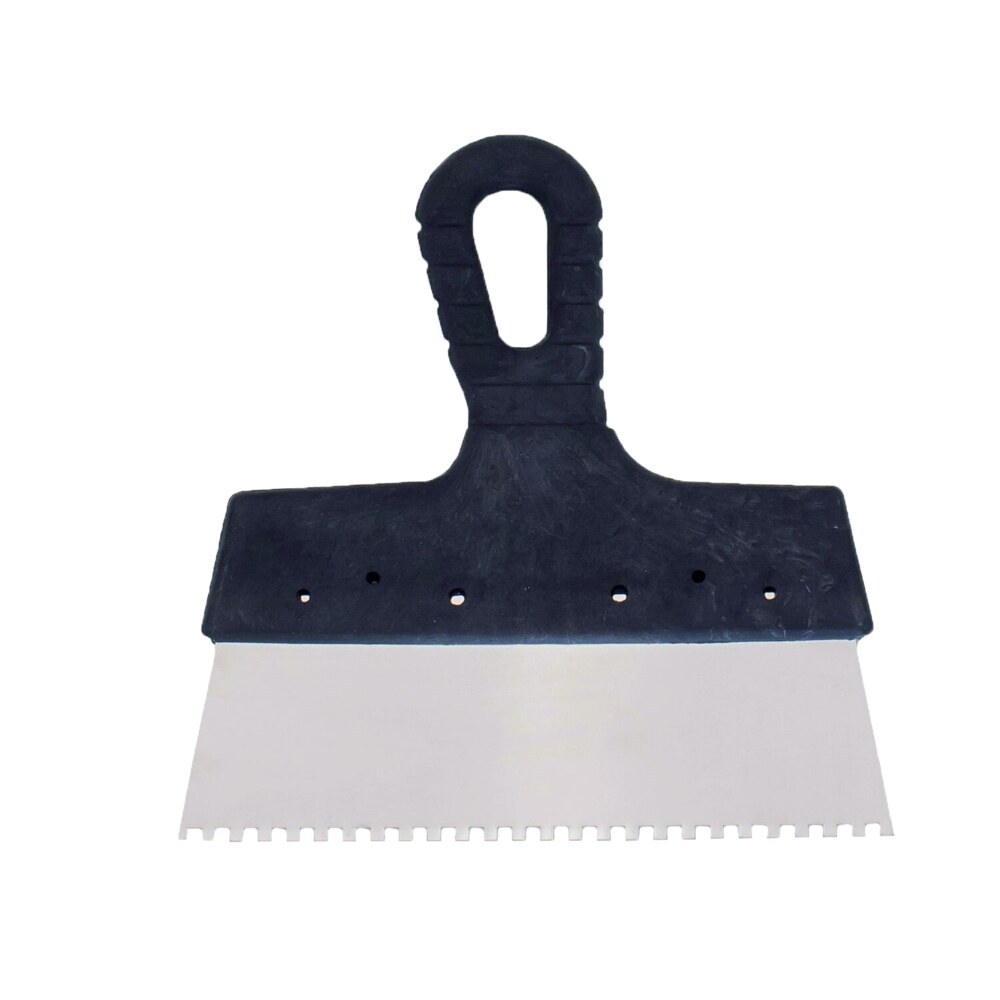 Зубчатый шпатель нержавеющая сталь,подойдет для раствора или плиточного клея. Инструмент позволяет эффективно и быстро выровнять слой.