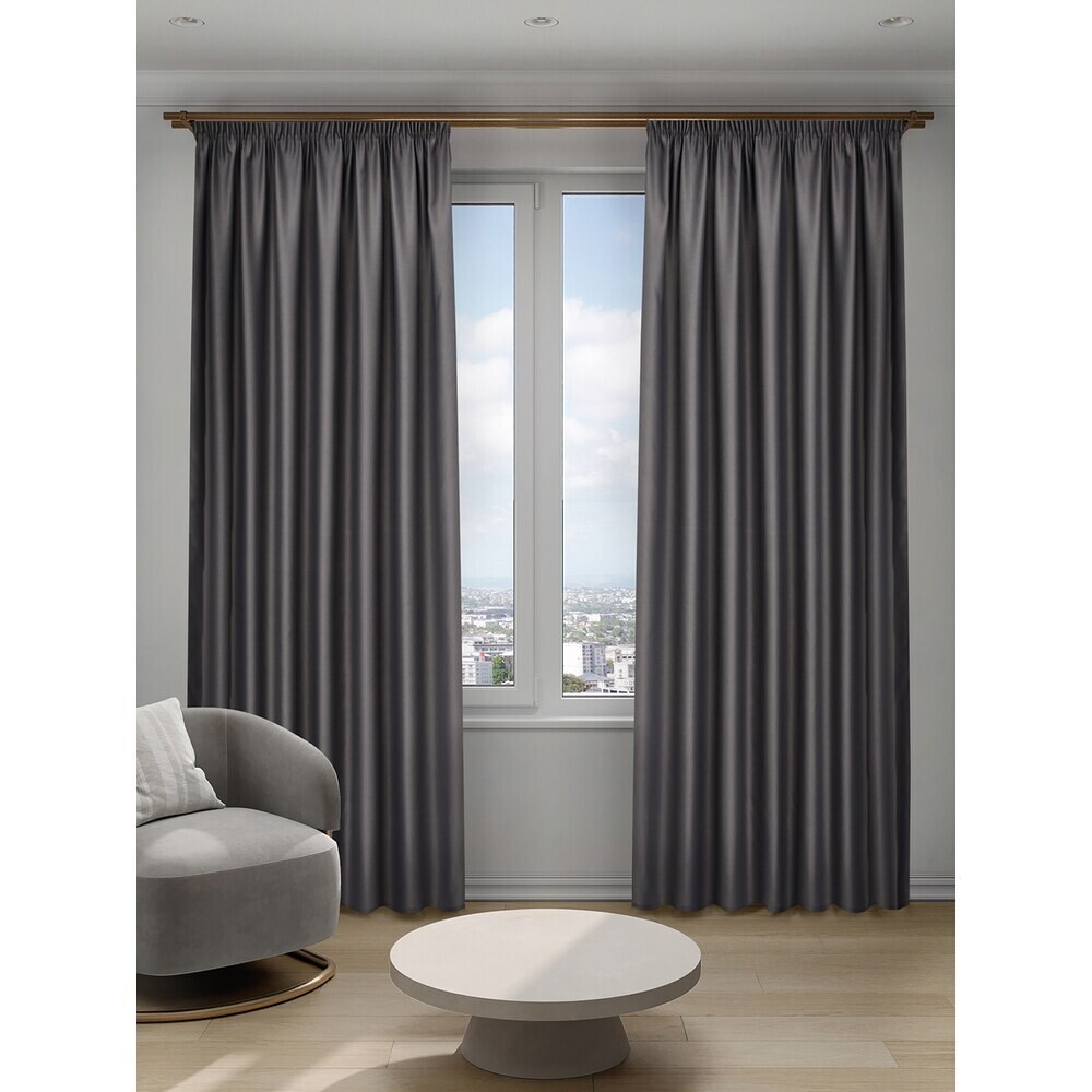 Готовая декоративная штора блэкаут из сатина 280х200 см прекрасно дополнит как классический, так и современный интерьер. Фактура сатина позволяет формировать мягкие складки и драпировку.