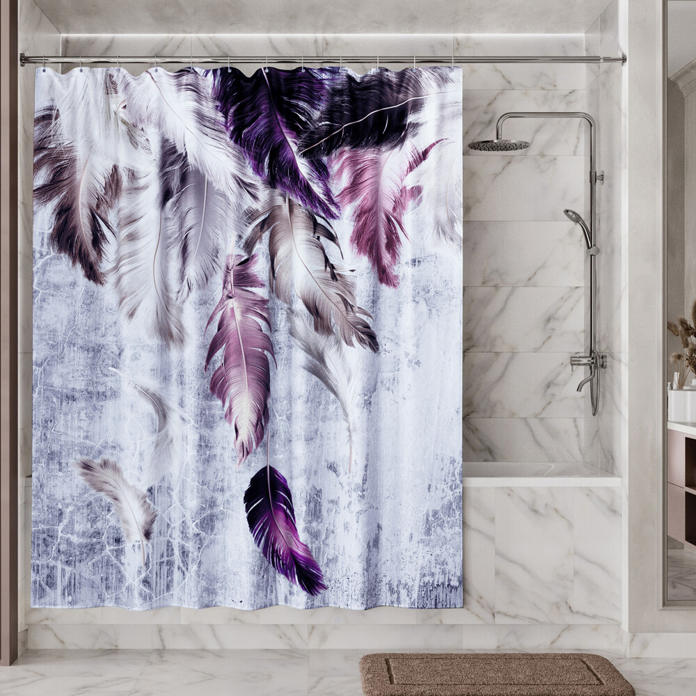 Комплектация: Шторка для ванной, пластиковые кольца — 12 шт.