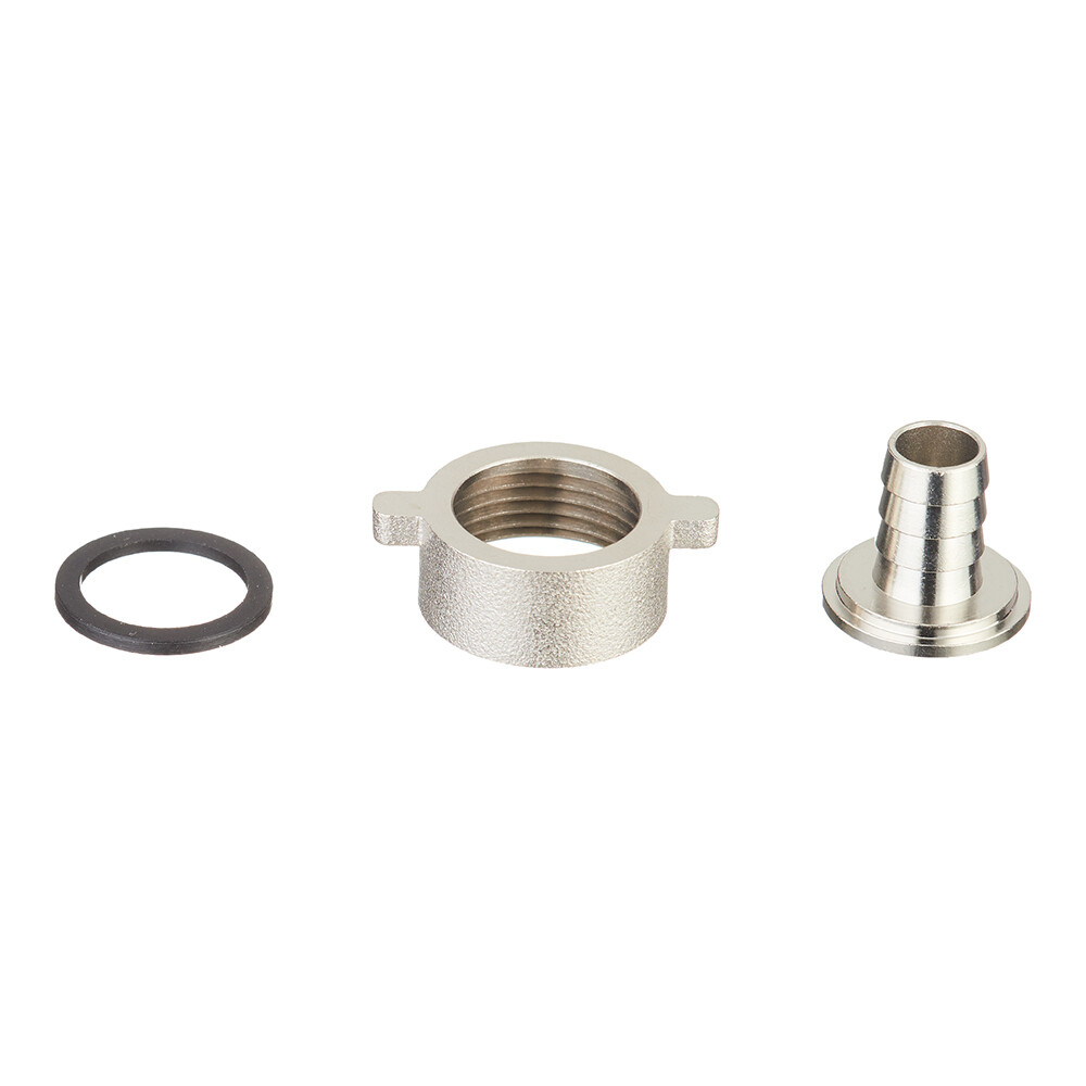 С одной стороны штуцера находится внутренняя резьба 3/4 дюйма, с другой стороны : выход на шланг типа » елочка» на 12 мм. Для надежности соединения шланг дополнительно закрепляется хомутом подходящего диаметра (хомут в комплект не входит). Изготовлен из латуни, обеспечивает надежное герметичное соединение в течение всего срока службы.
