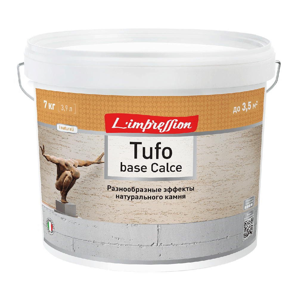 Штукатурка декоративная L’impression Tufo base Calce Травертин белая 7 кг