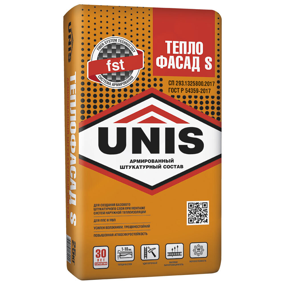Штукатурно-клеевая смесь для теплоизоляции Unis Теплофасад S высокопрочная 25 кг