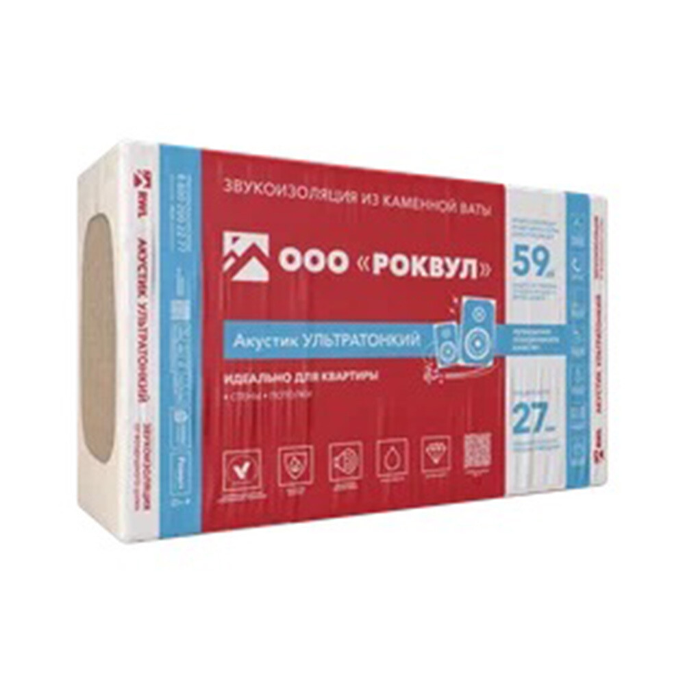Шумоизоляция Роквул Акустик Баттс Про Ультратонкий 27х600х1000 мм 7,2 кв.м