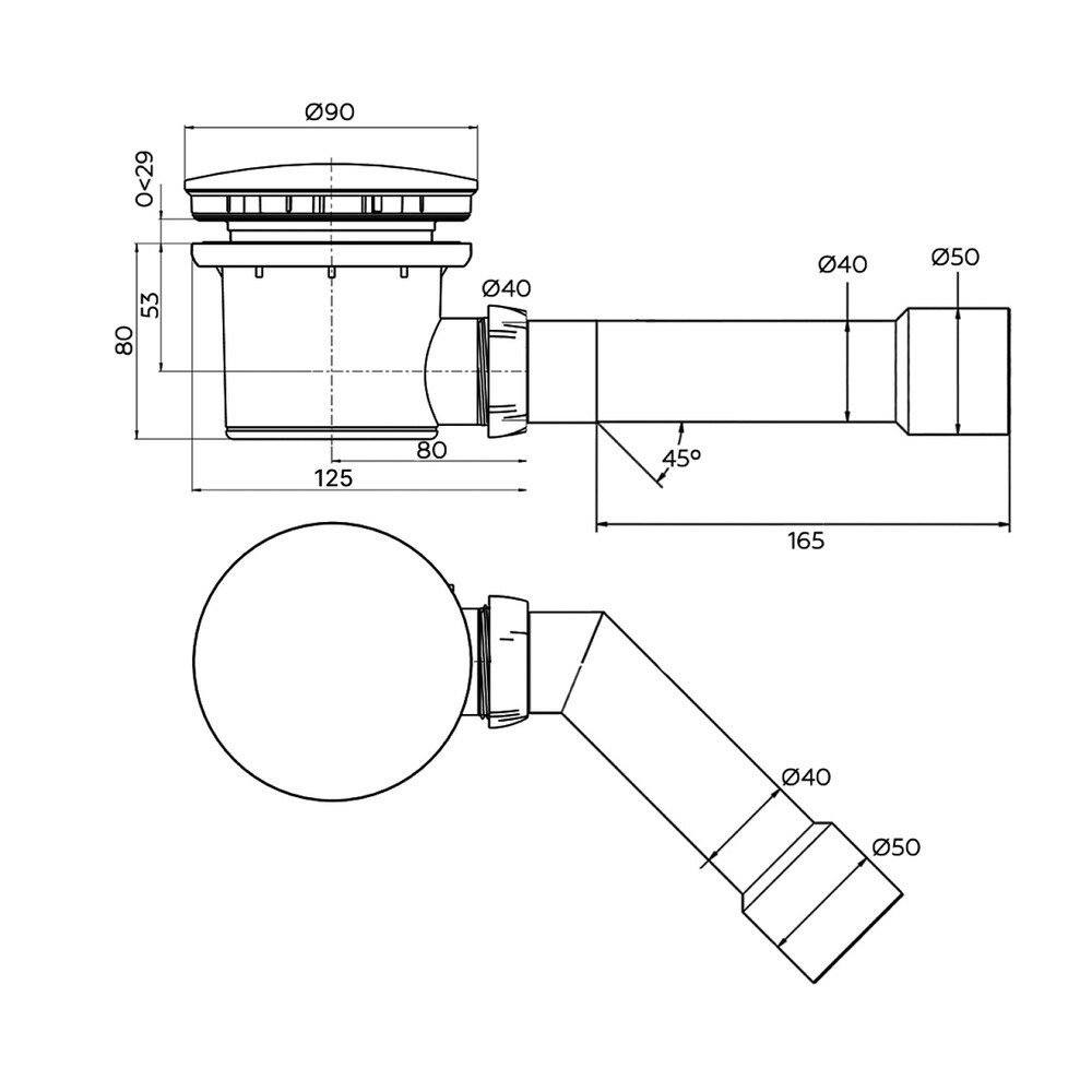 Сифон для душевого поддона Wirquin Black Touch 1 1/2х40 мм проточный с выпуском d50 мм с соединением 40/50 мм (30724776)