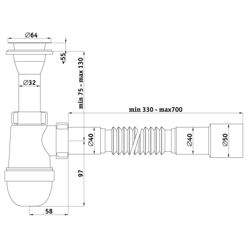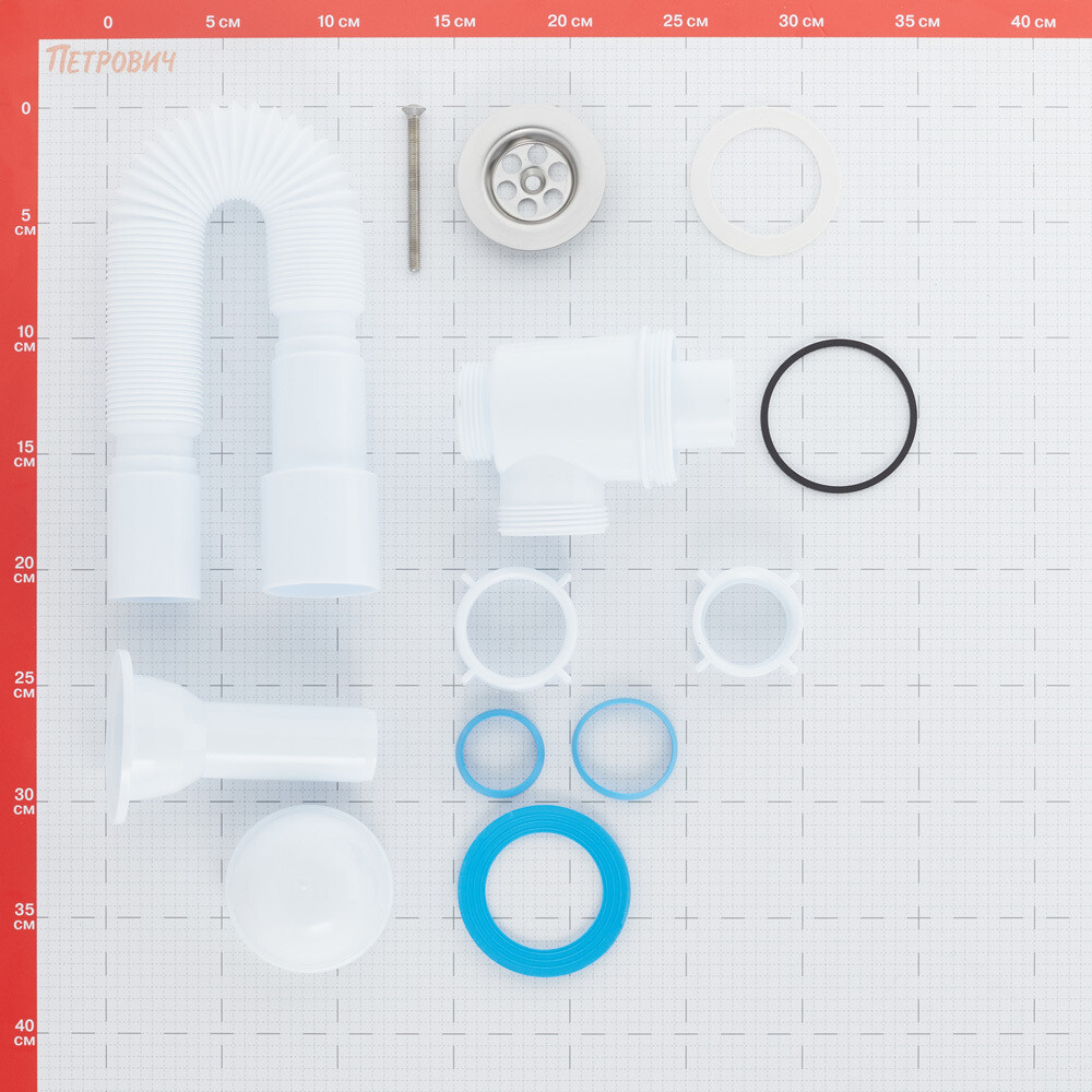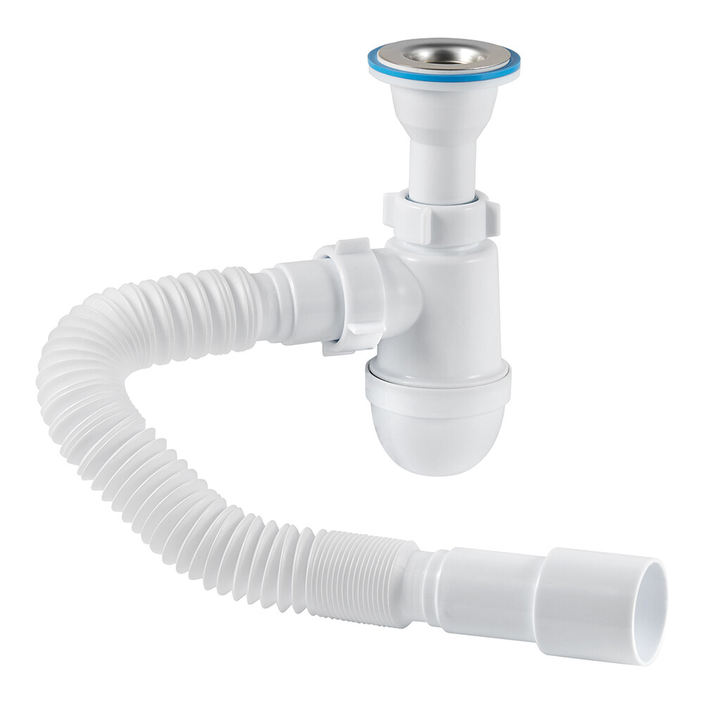 Сифон для раковины АНИ пласт 1 1/4х40 мм с выпуском 40/50 мм с соединением 40/50 мм белый (C2015)