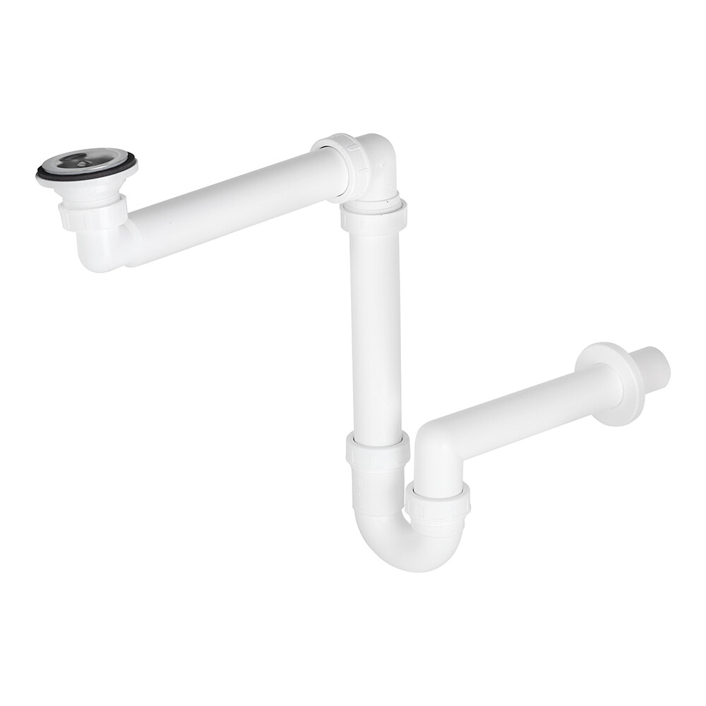 Сифон для раковины и мойки Alcadrain 1 1/2х40 мм со смещением с выпуском d60 мм белый (A413/AG210511100)