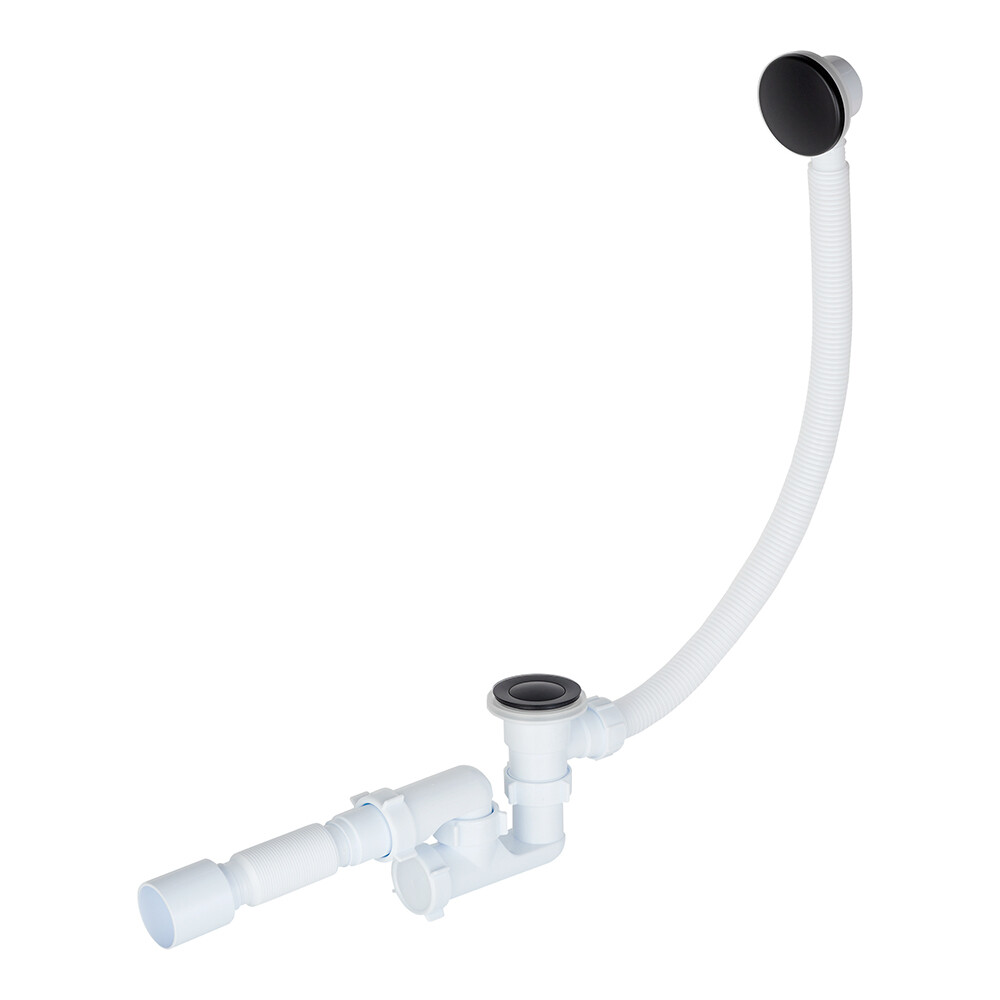Сифон для ванны АНИ пласт 1 1/2х40 мм регулируемый слив d50 мм автомат с выпуском клик-клак с соединением 40/50 мм (EC255BL)