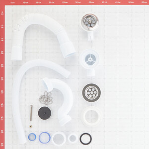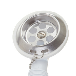 сифон, выпуск с переливом, гибкое соединение, пробка с цепочкой.