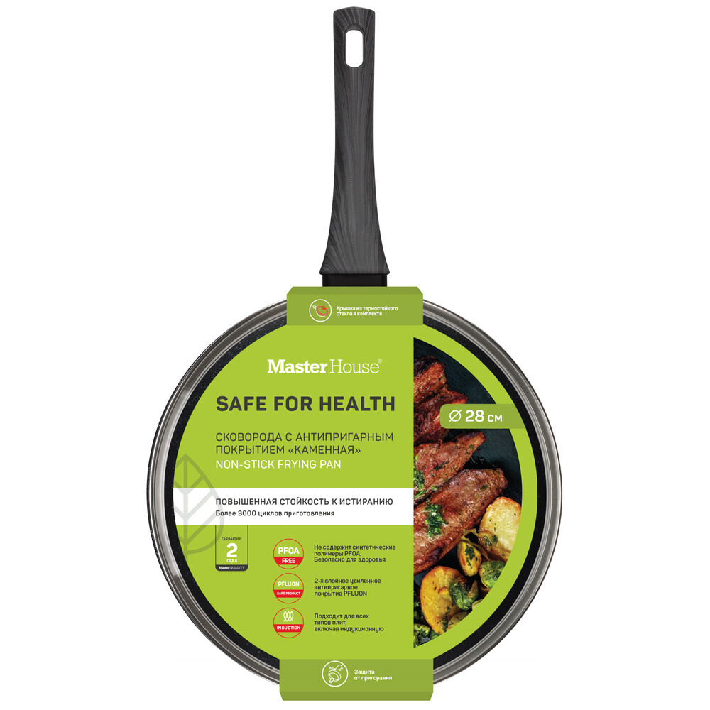 Предназначена для жарки и тушения овощей и других видов блюд. Крышка для сковороды в комплекте. Прочное и долговечное антипригарное покрытие. Позволяет готовить с минимальным количеством масла. Покрытие не содержит вредных кислот (PFOA), а корпус изготовлен из пищевого сплава. Безопасно для здоровья. Прочное дно и корпус сковороды не подвержены деформации и обеспечивают равномерный нагрев. Продукты не пригорят, идеально для длительного томления. Диаметр дна и высота борта комфортны для готовки объемных блюд – удобно жарить картошку или тушить овощи. Подходит для всех видов плит, включая индукционную. Можно мыть в посудомоечной машине в режиме ECO в холодной воде, с небольшим количеством моющего средства. Высокое качество гарантировано производителем Master Quality. Безупречный внешний вид, практичность и долговечность. Срок службы – 2 …