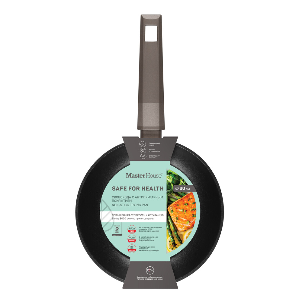 Предназначена для жарки и тушения овощей и других видов блюд. Прочное и долговечное антипригарное покрытие. Легко моется. Позволяет готовить с минимальным количеством масла. Покрытие не содержит вредных кислот (PFOA) а корпус изготовлен из пищевого сплава. Безопасно для здоровья. Прочное дно и корпус сковороды не подвержены деформации и обеспечивают равномерный нагрев. Диаметр дна и высота борта комфортны для готовки любых блюд. Подходит для всех видов плит, включая индукционную. Можно мыть в посудомоечной машине в режиме ECO в холодной воде, с небольшим количеством моющего средства. Высокое качество гарантировано производителем Master Quality. Безупречный внешний вид, практичность и долговечность. Срок службы – 2 года.