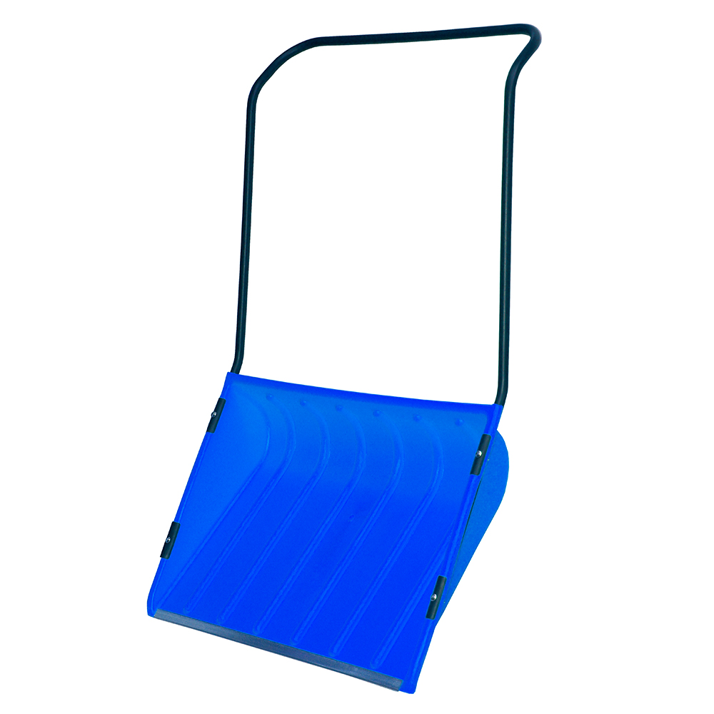 Скрепер для снега оборудован П-образной металлической рукояткой. Кромка скрепера усилена планкой из оцинкованной стали, которая защищает пластмассу от механических повреждений. Скрепер для снега хорош в применении при уборке больших и малых территорий, тротуаров, автомобильных стоянок. Высота ковша — 550 мм.
