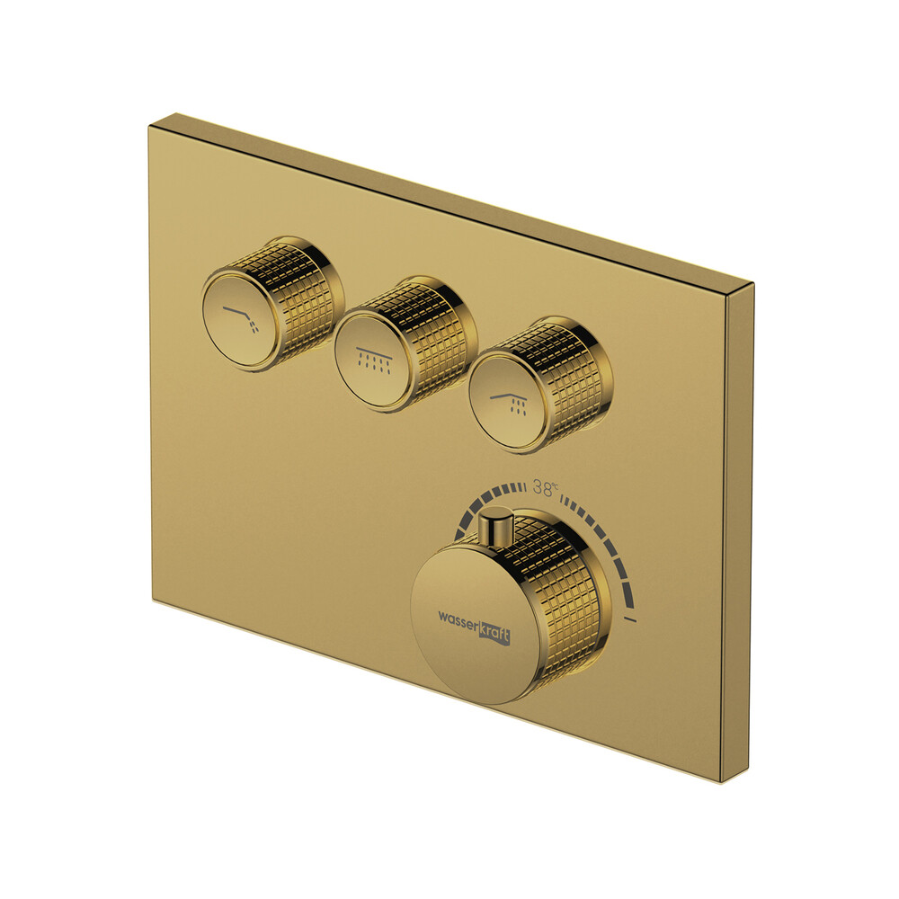 Смеситель для душа встраиваемый WasserKraft Sauer термостатический с переключателем без лейки золото (7158 Thermo)