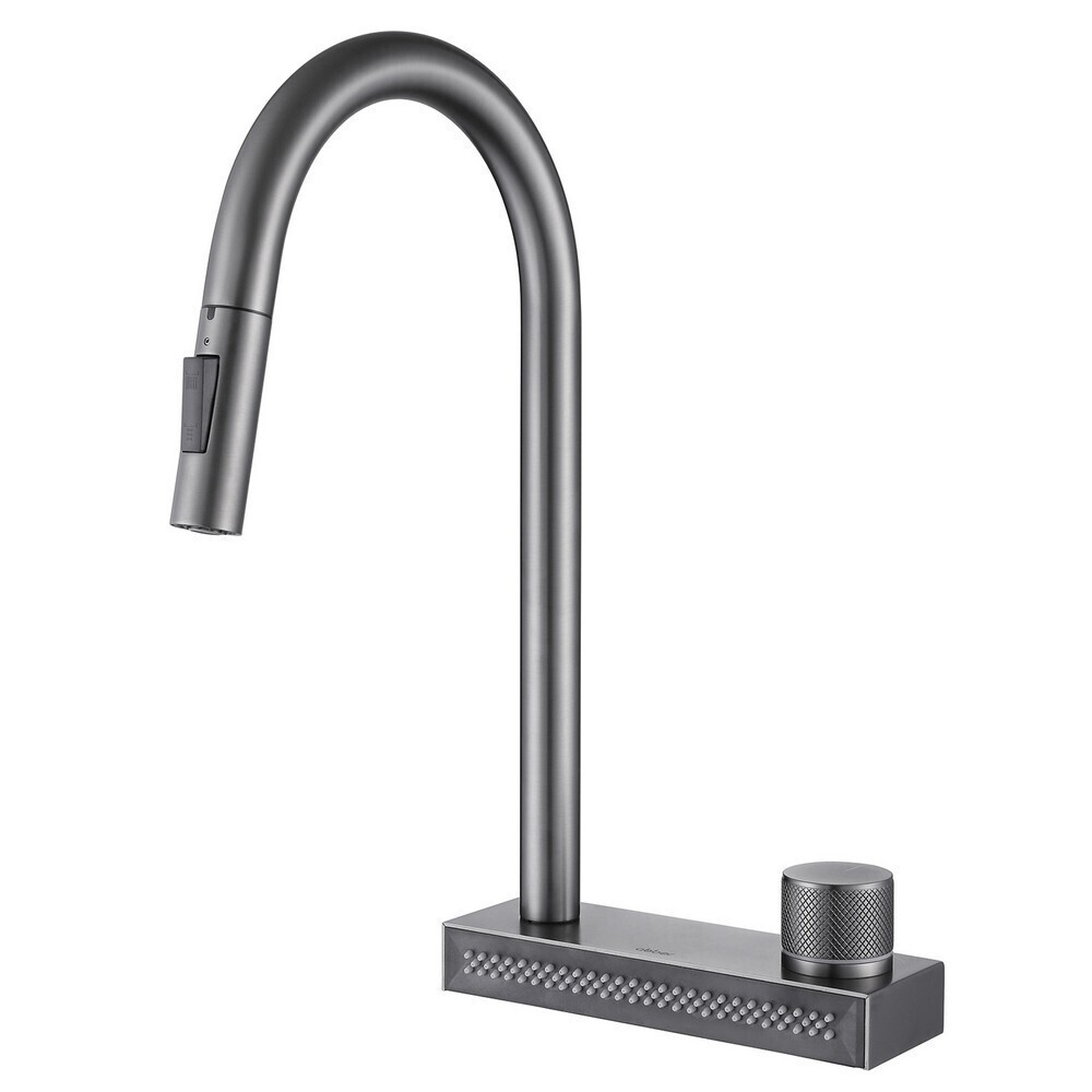 Смеситель для кухни Abber Kreis никель с высоким изливом с водопадом с вытяжной лейкой (AF8114NG)