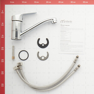 смеситель, гибкие подводки 35 см 1/2 – 2 шт., крепление, инструкция по монтажу и эксплуатации, гарантийный талон.