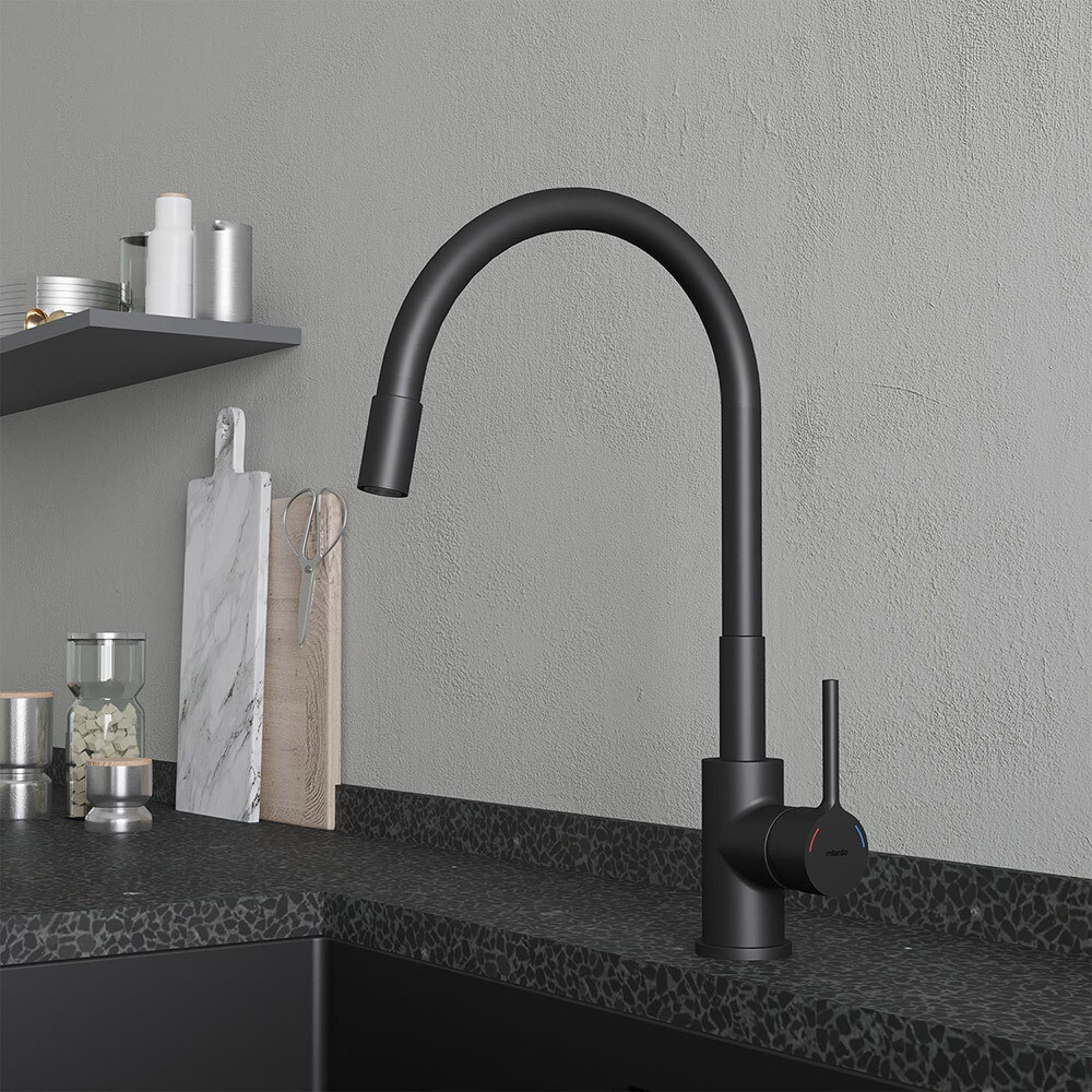 Главная / Каталог / Товары для дома / Кухня / Мойки и смесители для кухни / Смесители для кухни / Смеситель для кухни Milardo Meal черный с гибким изливом однорычажный (M01BL0FM05)