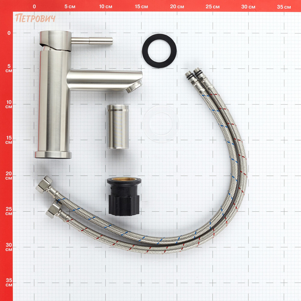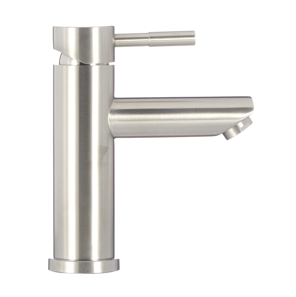 Смеситель для раковины однорычажный из нержавеющей стали.