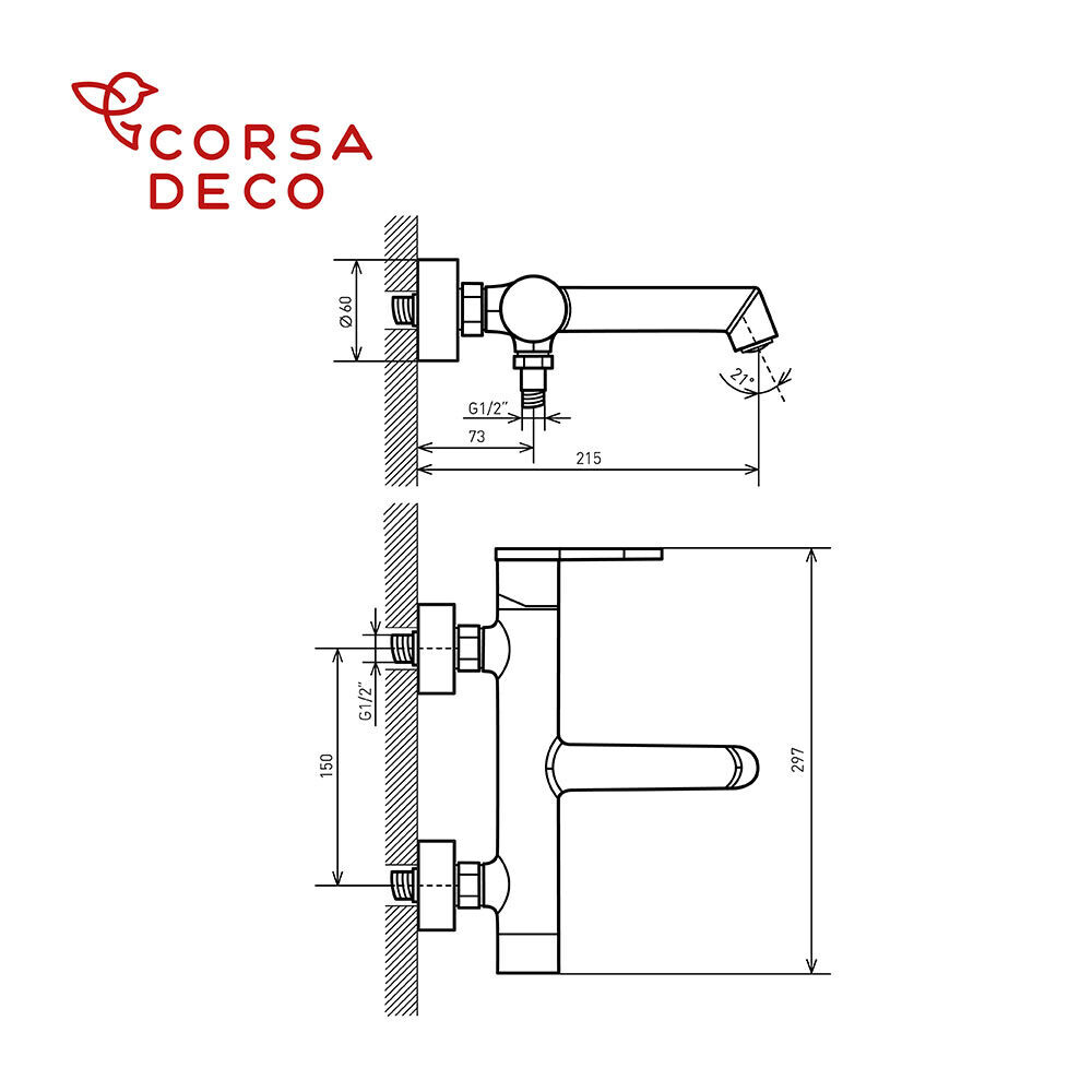 Смеситель для ванны Corsa Deco EX хром однорычажный с коротким изливом с лейкой (FBTEX1)