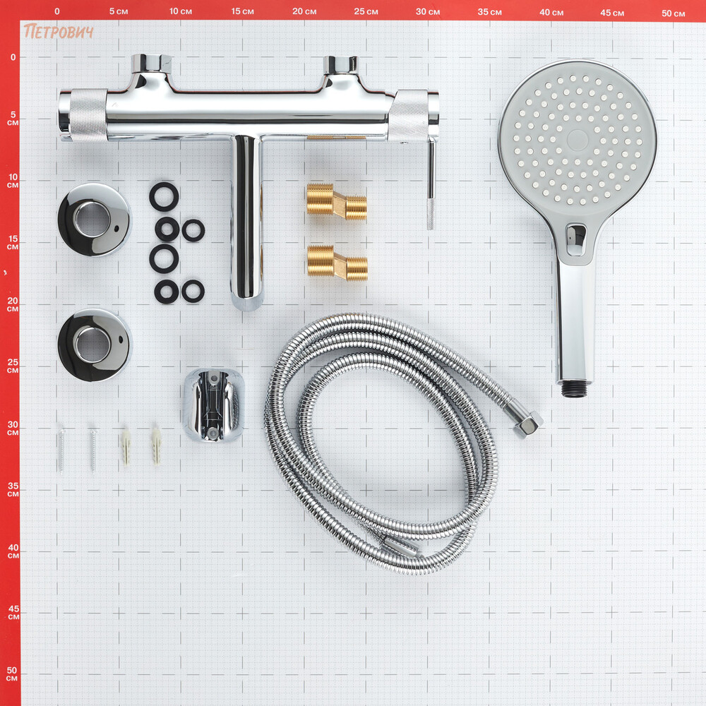 Смеситель, монтажный набор, душевой шланг, ручная лейка, держатель, инструкция по эксплуатации с гарантийным талоном.
