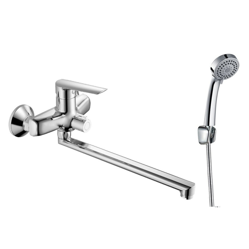 Смеситель для ванны с длинным изливом с аксессуарами выполнен из цинкового сплава (внутренняя основа-термостойкий литой пластик PPA).
