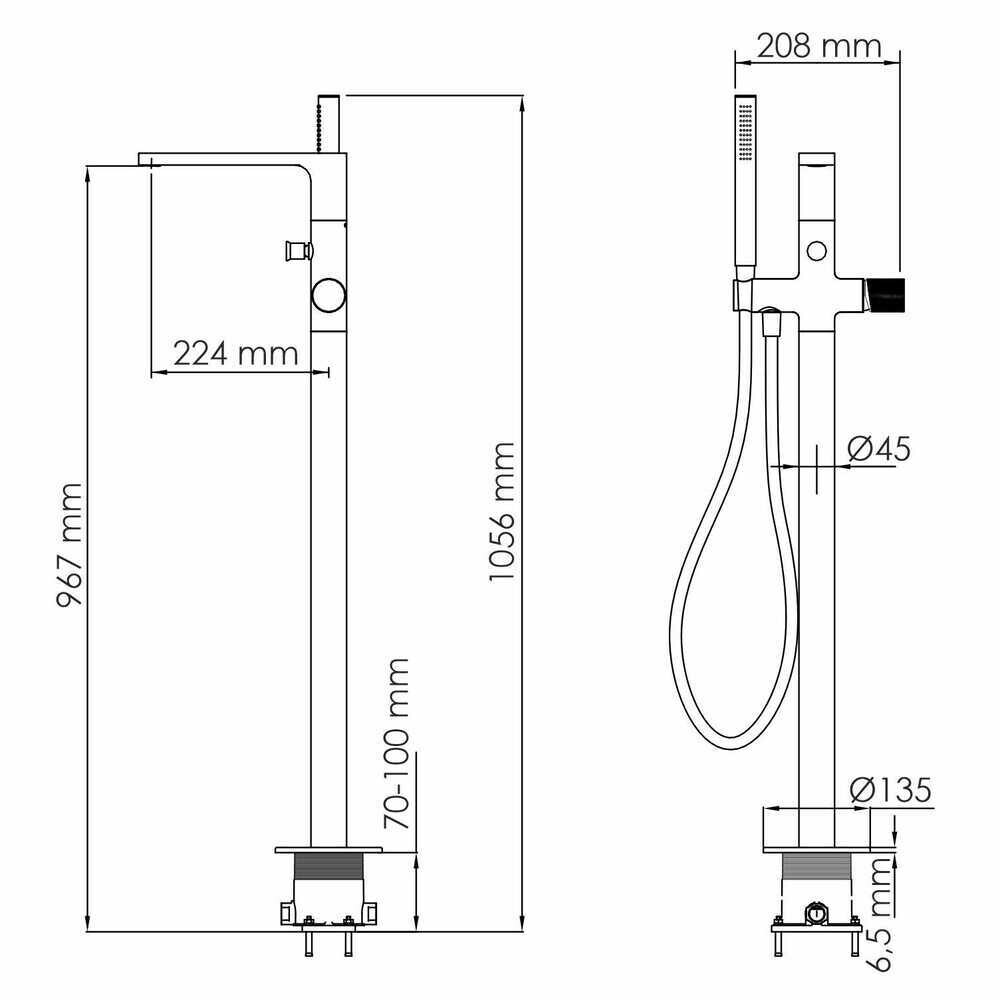 Смеситель для ванны напольный WasserKraft Fulda 5200 черный однорычажный с лейкой (5221)