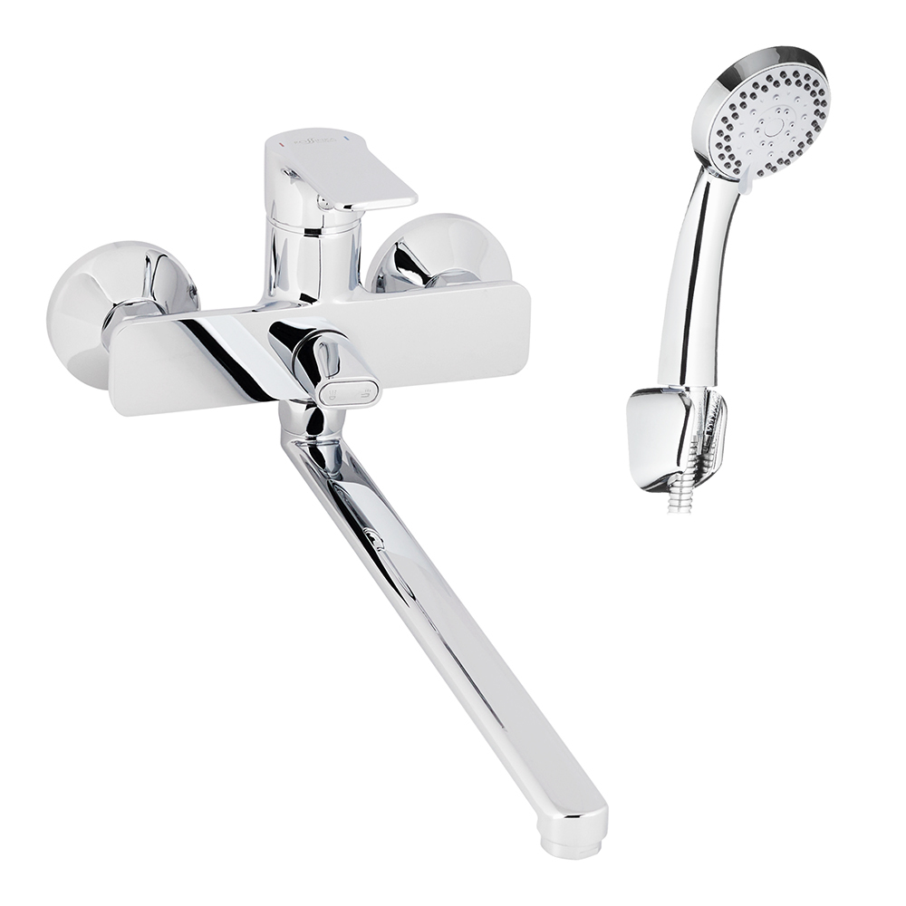 Комплектация: смеситель, аэратор, душевая лейка, душевой шланг, эксцентрики, настенный держатель, крепления.