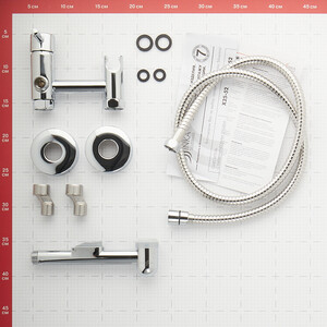 корпус смесителя с керамическим катриджем и металлической рукояткой (1 шт.), шланг 1200 мм, лейка для биде с нажимным механизмом, паспорт изделия с гарантийным талоном (1 шт).