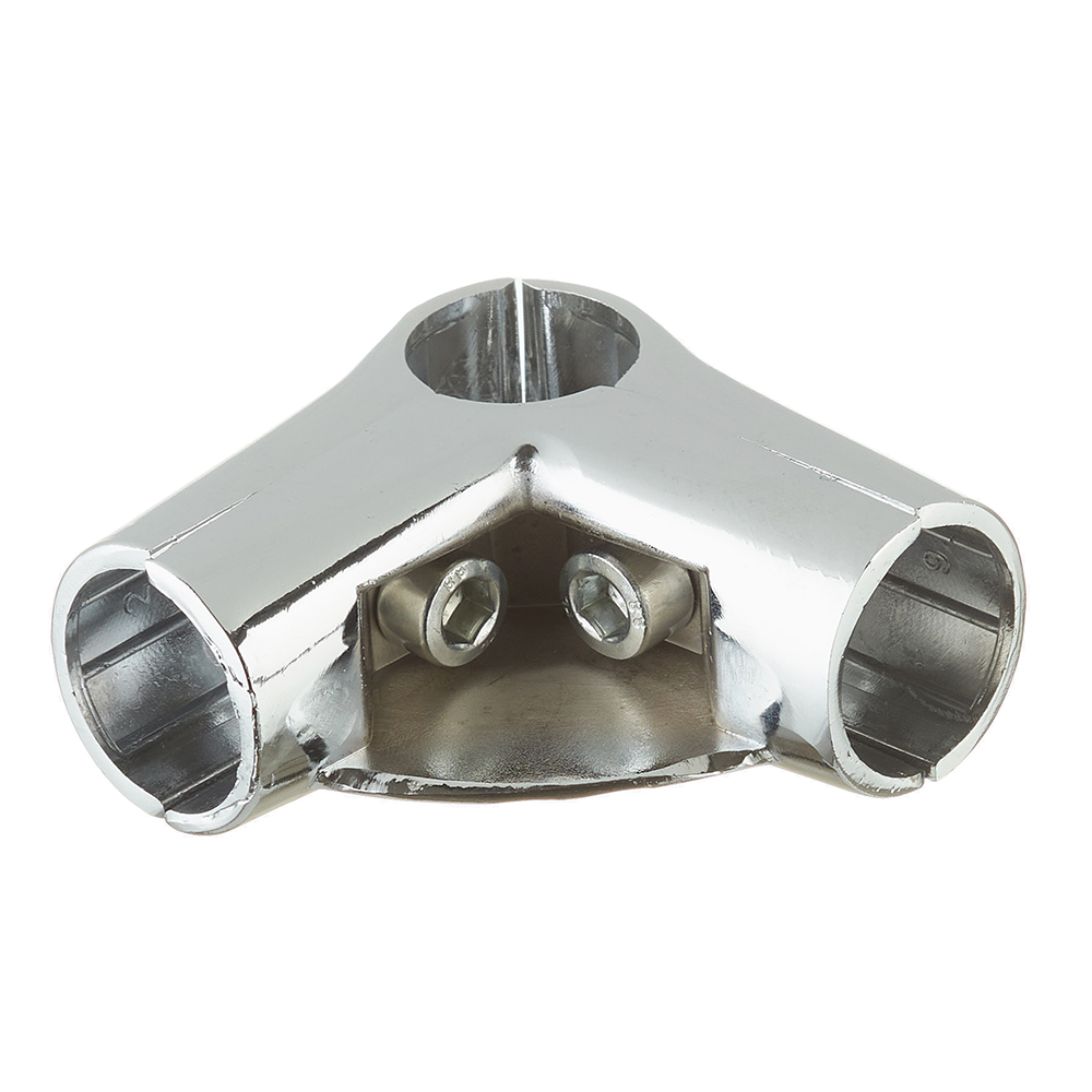 Соединитель угловой для трех труб к системе Joker d25 мм с площадкой хром