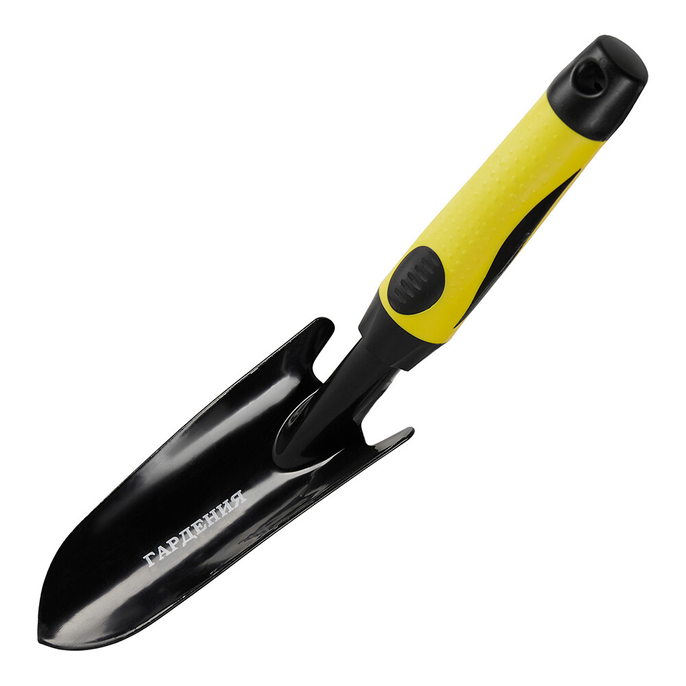 Линейка изделий под брендом «Гардения» создана для истинных ценителей садовых инструментов. Преимуществами данной серии являются металлическая рабочая часть толщиной 2 мм в порошковой окраске и нескользящая двухкомпонентная пластиковая ручка на конце инструментов для удобства работы и хранения; лёгкость в уходе за изделиями; широкий ассортимент товаров в линейке; стильное исполнение; групповая упаковка в картонные коробки. Применяется для посадки и пересадки растений. Форма совка позволяет без трудностей сделать углубление в земле нужного размера.