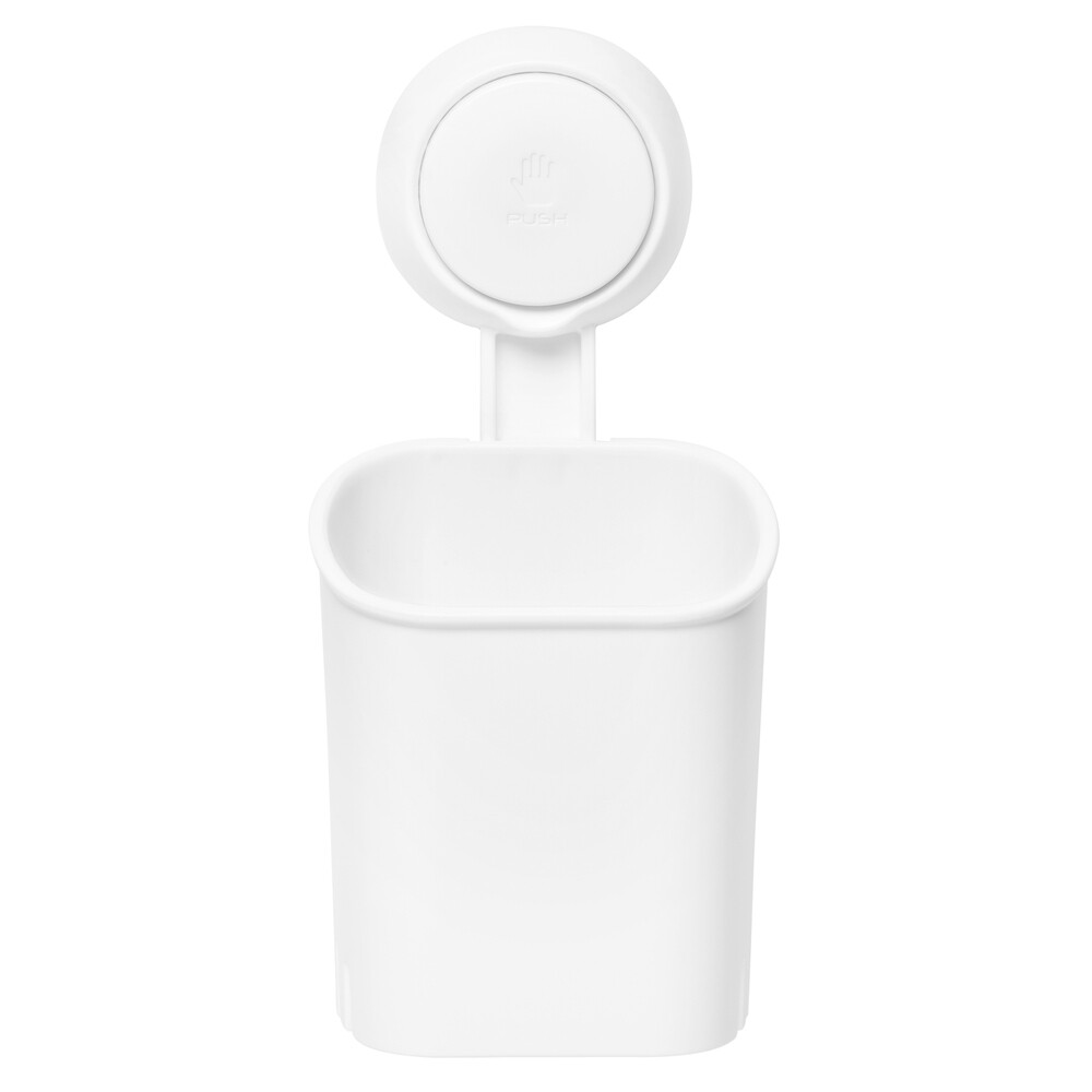 Многоразовые вакуумные присоски абсолютно безопасны для поверхностей в местах крепления и фиксируются без сверления. Снизу расположены специальные отверстия для пропуска воды и лучшей циркуляции воздуха, что обезопасит хранящиеся в стакане предметы от излишней влаги. На поверхности пластика не остается следов влаги и белого налета. Подходит для размещения на гладких поверхностях: керамической плитке, стекле, зеркале, металле, пластике. Нагрузка до 5 кг.