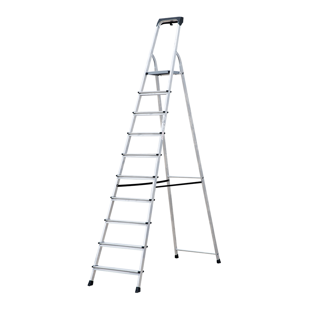 В основании стремянки прочная рама из алюминиевого профиля прямоугольного сечения. Пластиковые наконечники препятствуют скольжению, и обеспечивают отличную устойчивость. Многократное клепаное соединение ступеней с рамой обеспечивает исключительную надежность и безопасность при работе на стремянке.