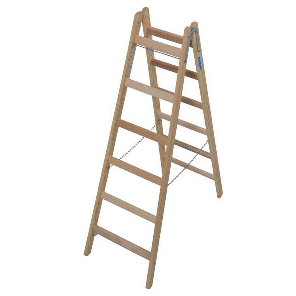 Прочные стальные шарниры. Страховка цепями от саморасхождения. Фиксаторы для безопасной транспортировки. Боковины из высококачественных пород древесины. Непроводящий ток материал. Перекладины из твердых пород дерева. Экологически безвредная древесина. Продукт сертифицирован в строгом соответствии с ГОСТ 24258-88 и DIN EN-131.