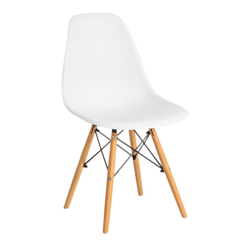 Сочетание белого пластикового сиденья, ножек из массива бука и классического металлического крепления придает стулу особенную красоту и оригинальность.