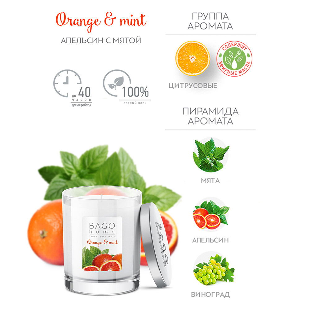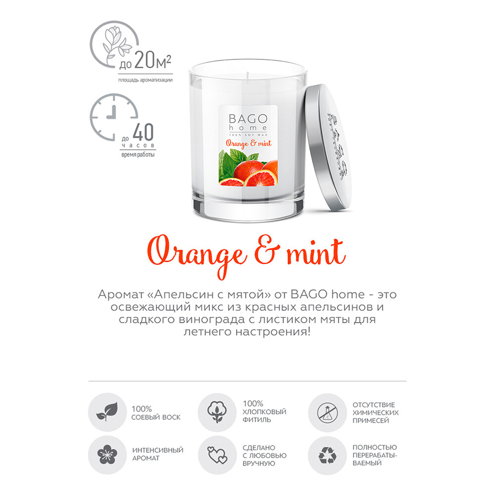 Свеча ароматическая Bago home Апельсин с мятой 132 г