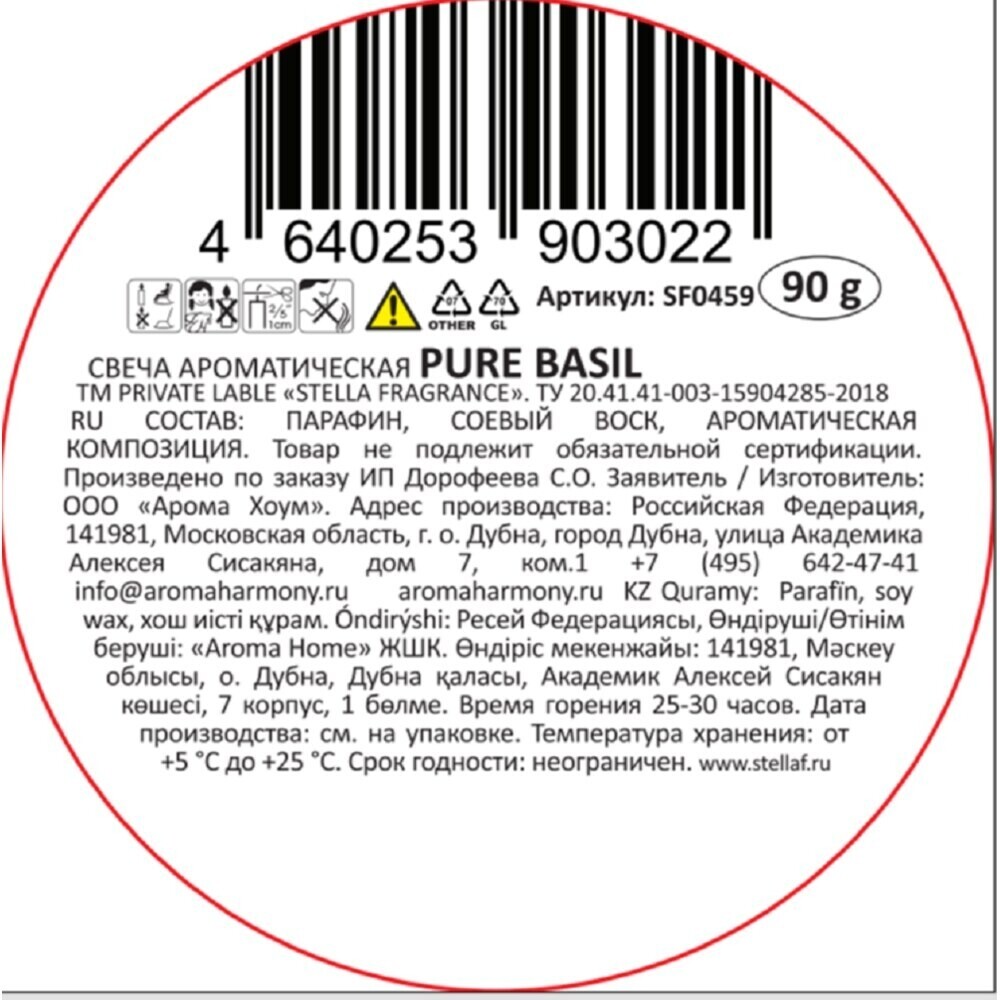 Свеча ароматическая Stella Fragrance Pure Basil 90 г