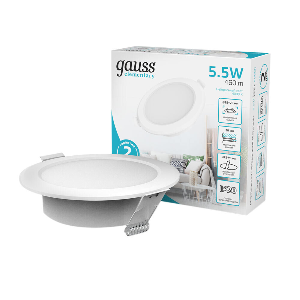 Светильник встраиваемый светодиодный с драйвером белый 5,5 Вт 4000К IP20 Gauss Elementary Downlight (997420205)