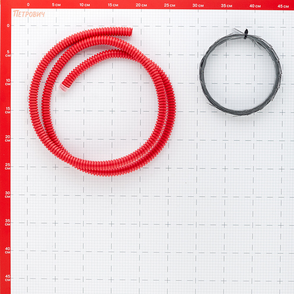 Комплектация: Секция нагревательная КС (длина установочного кабеля 2 м) — 1 шт., гофрированная трубка с заглушкой для термодатчика — 1 шт., лента монтажная — 1 шт., инструкция по эксплуатации с гарантийным талоном — 1 шт.