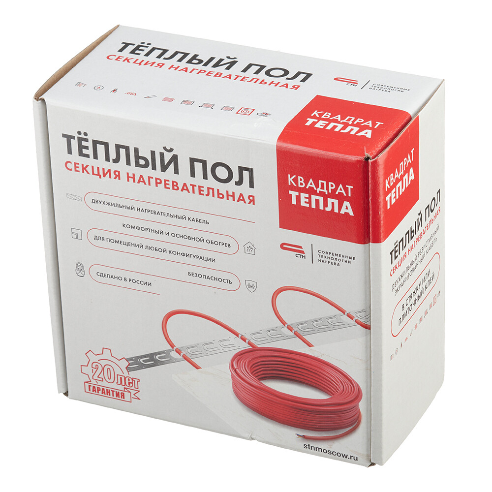 Теплый пол кабельный Квадрат тепла защищен от механических повреждений и произведен согласно ГОСТу, что позволяет заявлять долговременную эксплуатацию сроком 50 лет.
