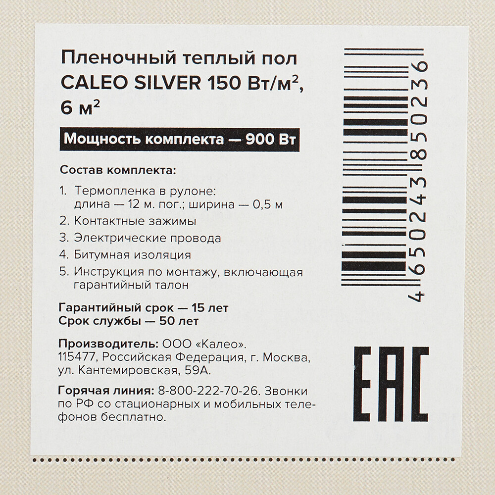 Теплый пол пленочный Caleo Silver 6 кв.м 150 (900) Вт